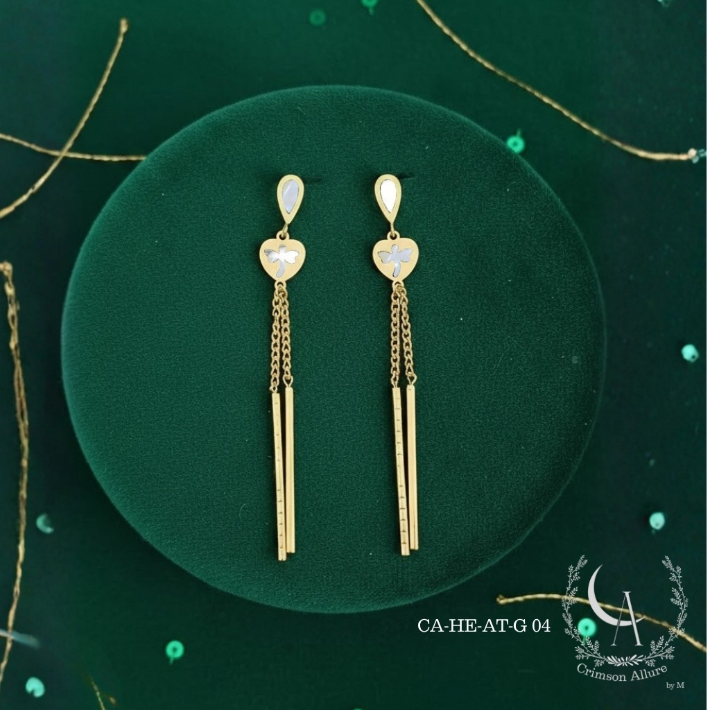 Enamel Dragonfly Long Drop Earrings