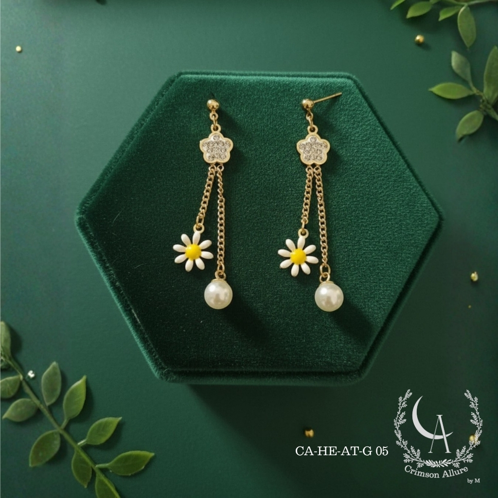 White Daisy Charm Hanging Earrings