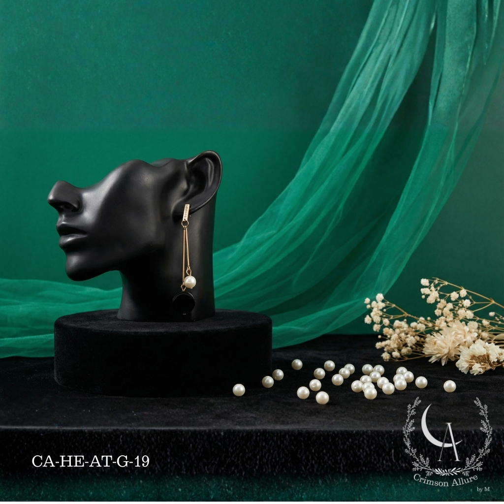 Bar white Pearl Drop & Black Bead Earrings