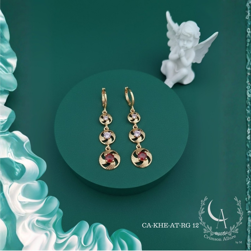 Geometric Spiral Motif Korean Drop Earrings with Multi-Stone Accent