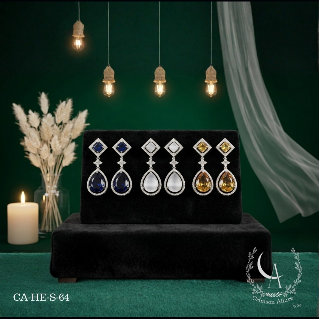 Halo Square Stud Earrings with Teardrop Crystal Drops