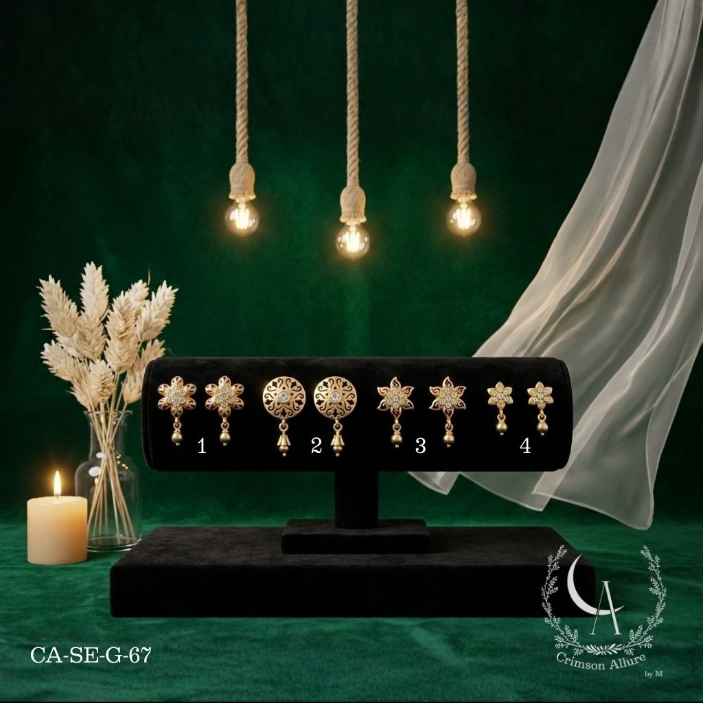 Traditional Gold-Tone Floral & Filigree Stud Earrings with Drop Beads