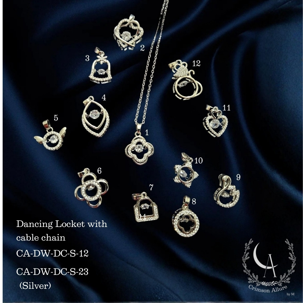Elegant Silver Crystal Pendant Collection – Minimal & Floral Inspired Designs – 12 different lockets with chain