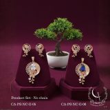 Pendant Set (No Chain) – Peacock-Inspired Teardrop Fan Motif Pendant Set (Transparent Stone – 05) & (Blue & Transparent Stone – 06) Gold